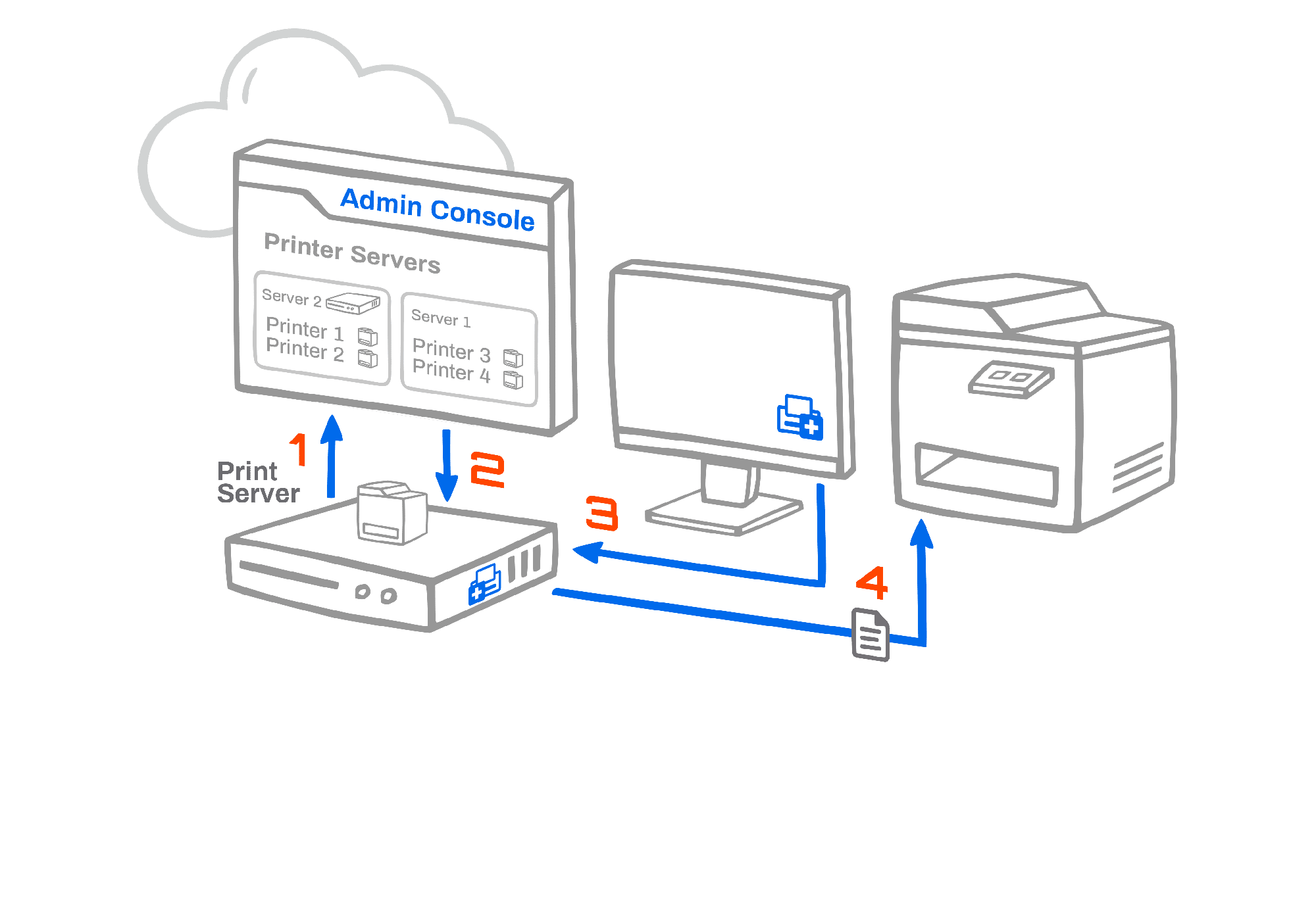 Serverless Printing Infrastructure se temelji na oblaku ili na mreži upravljanom rješenju koje integrira pisače direktno s krajnjim korisnicima. Ovim se izbjegava potreba za centralnim print serverom, a sve se upravlja preko centraliziranog sučelja koje omogućuje IT administratorima da konfiguriraju i nadziru ispise s bilo koje lokacije.